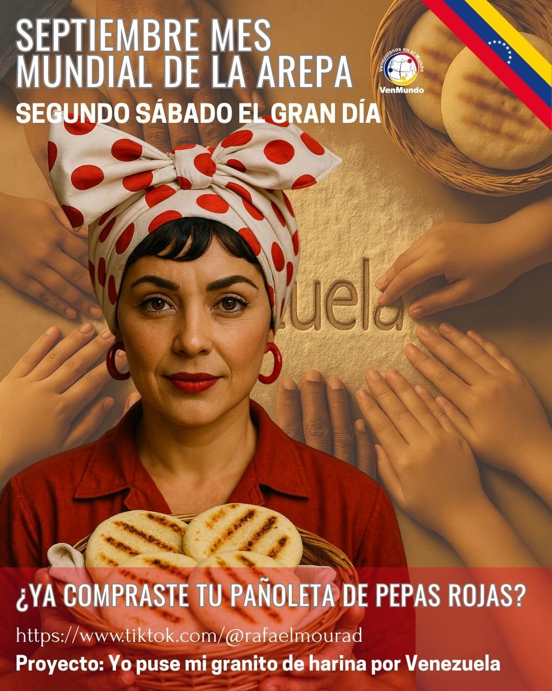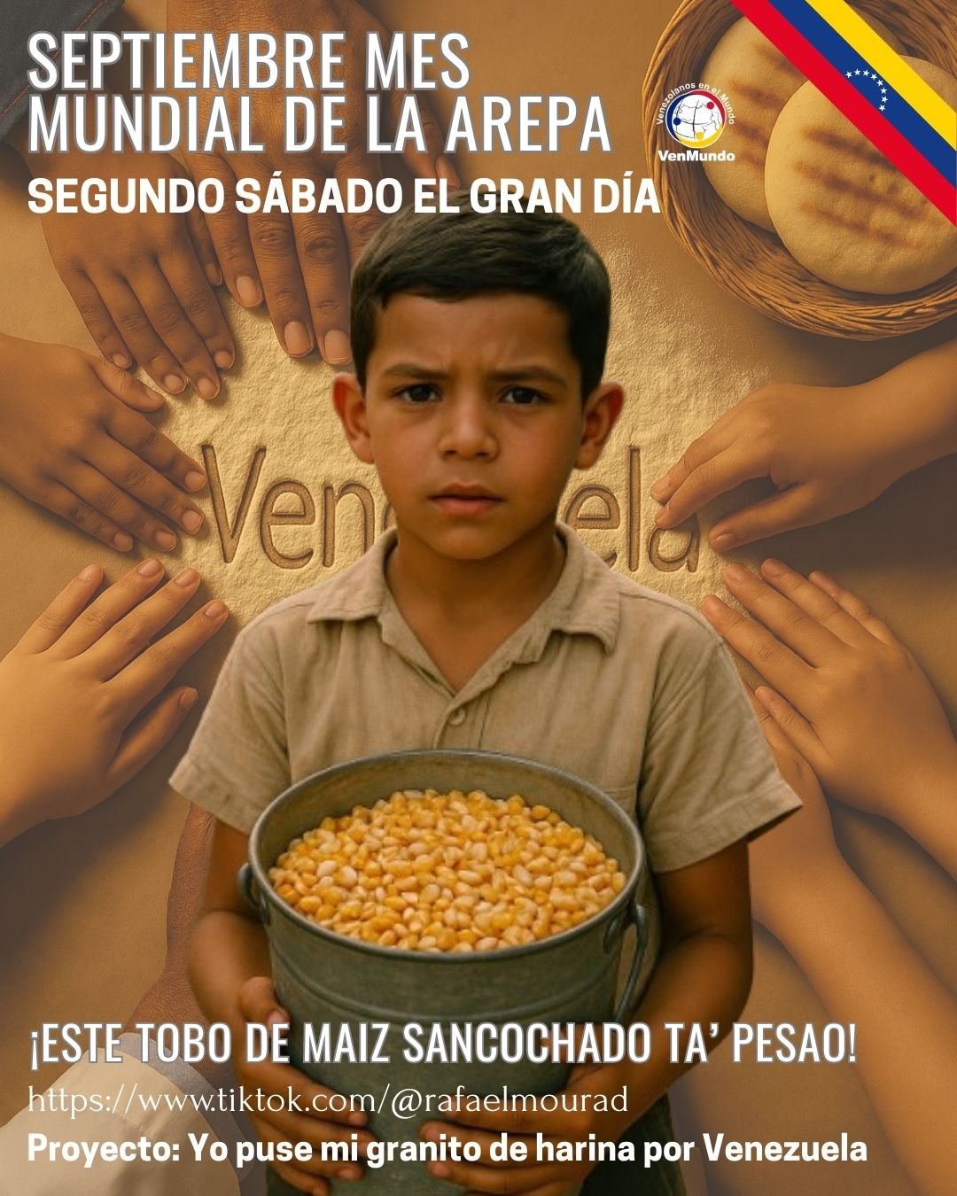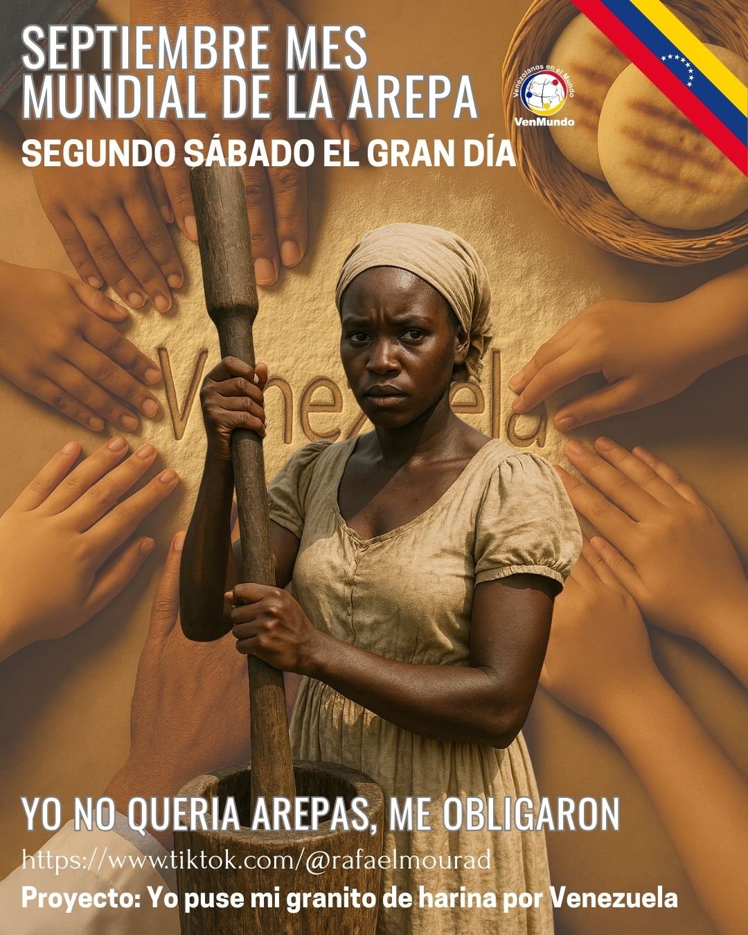 Todos los venezolanos del mundo están invitados a sumar su granito de harina. Únete el 13 de septiembre 2025, comparte tu historia con #MiGranitodeHarina y seamos protagonistas juntos del futuro de Venezuela desde nuestra identidad cultural compartida.