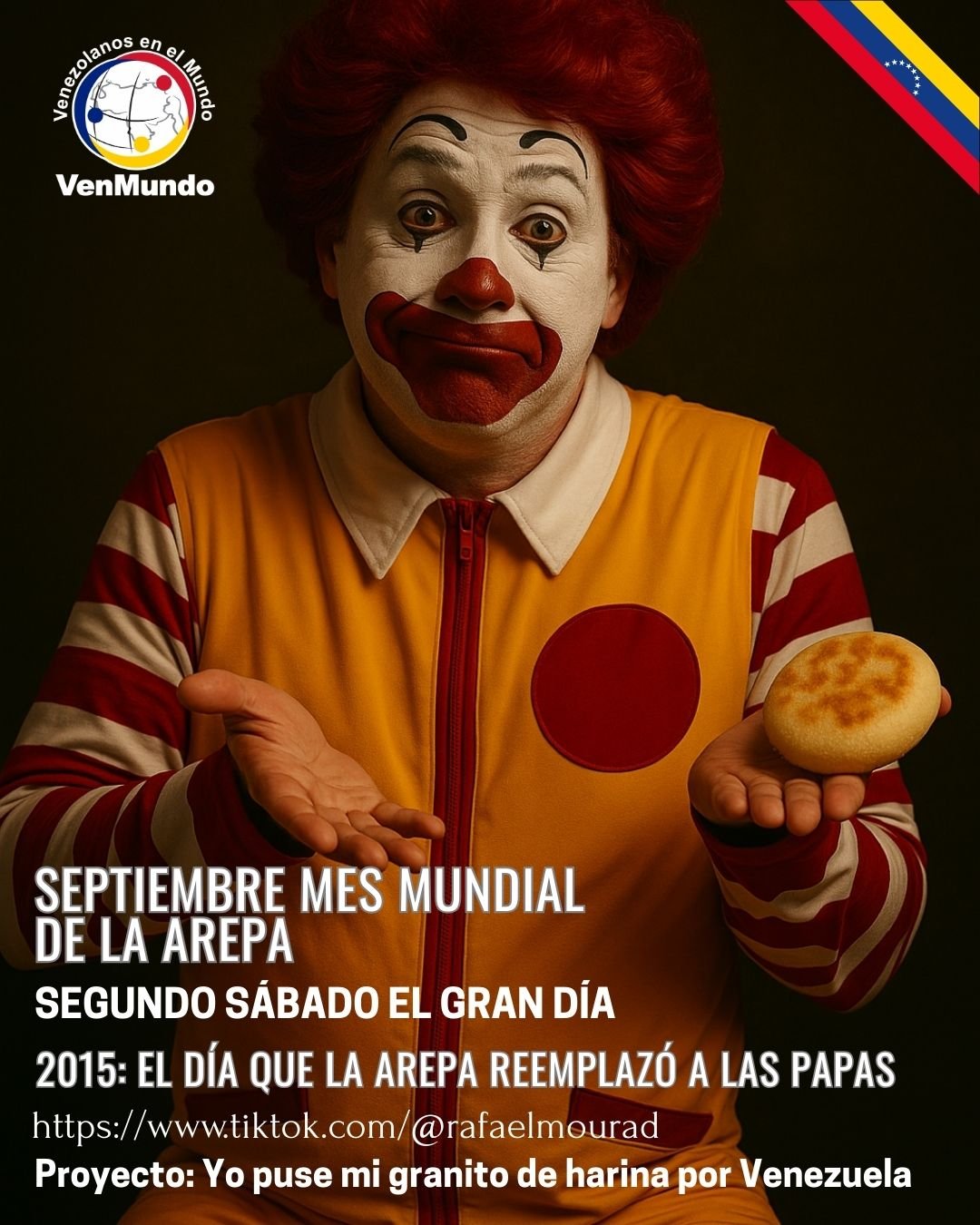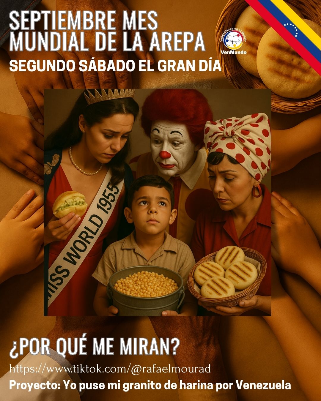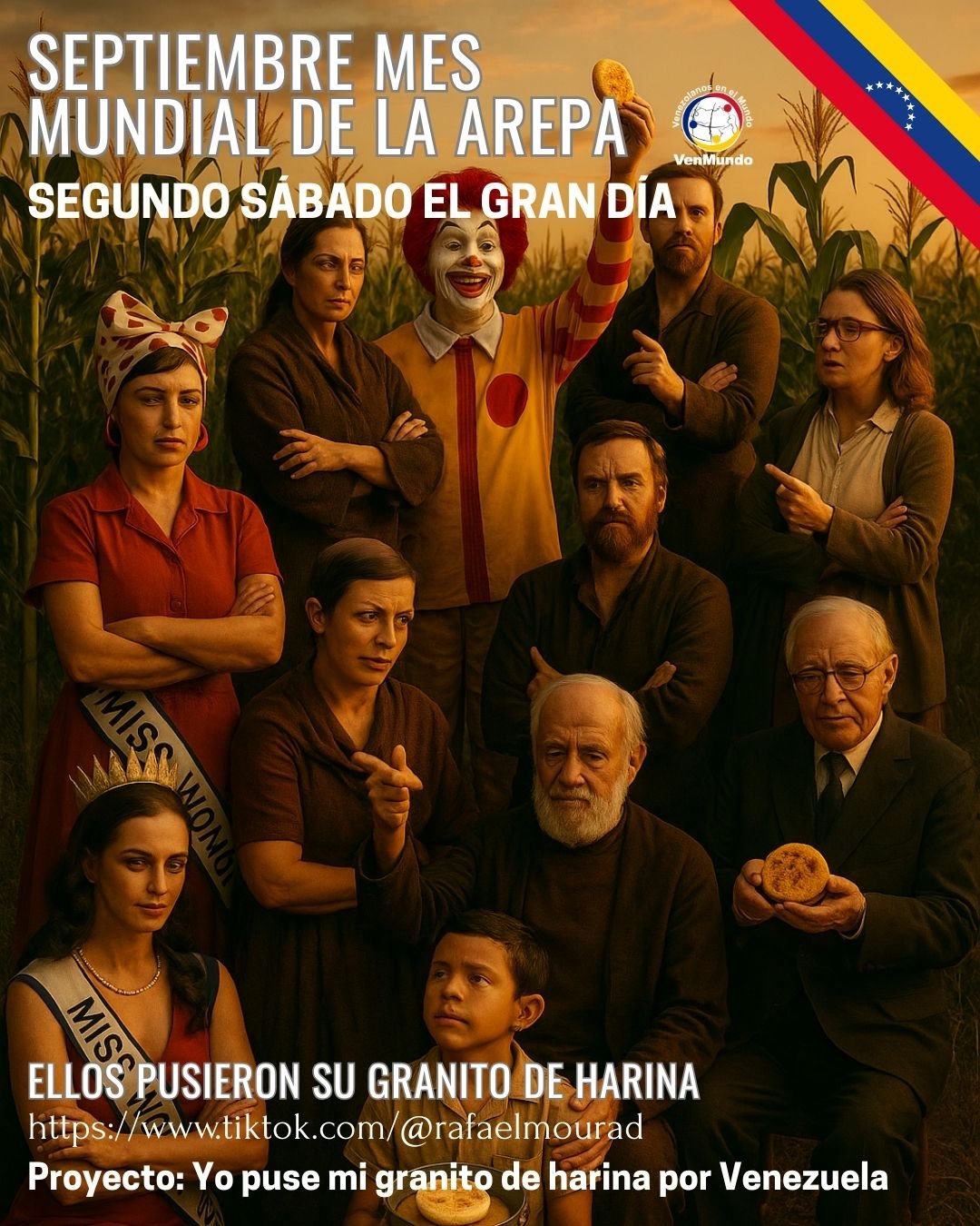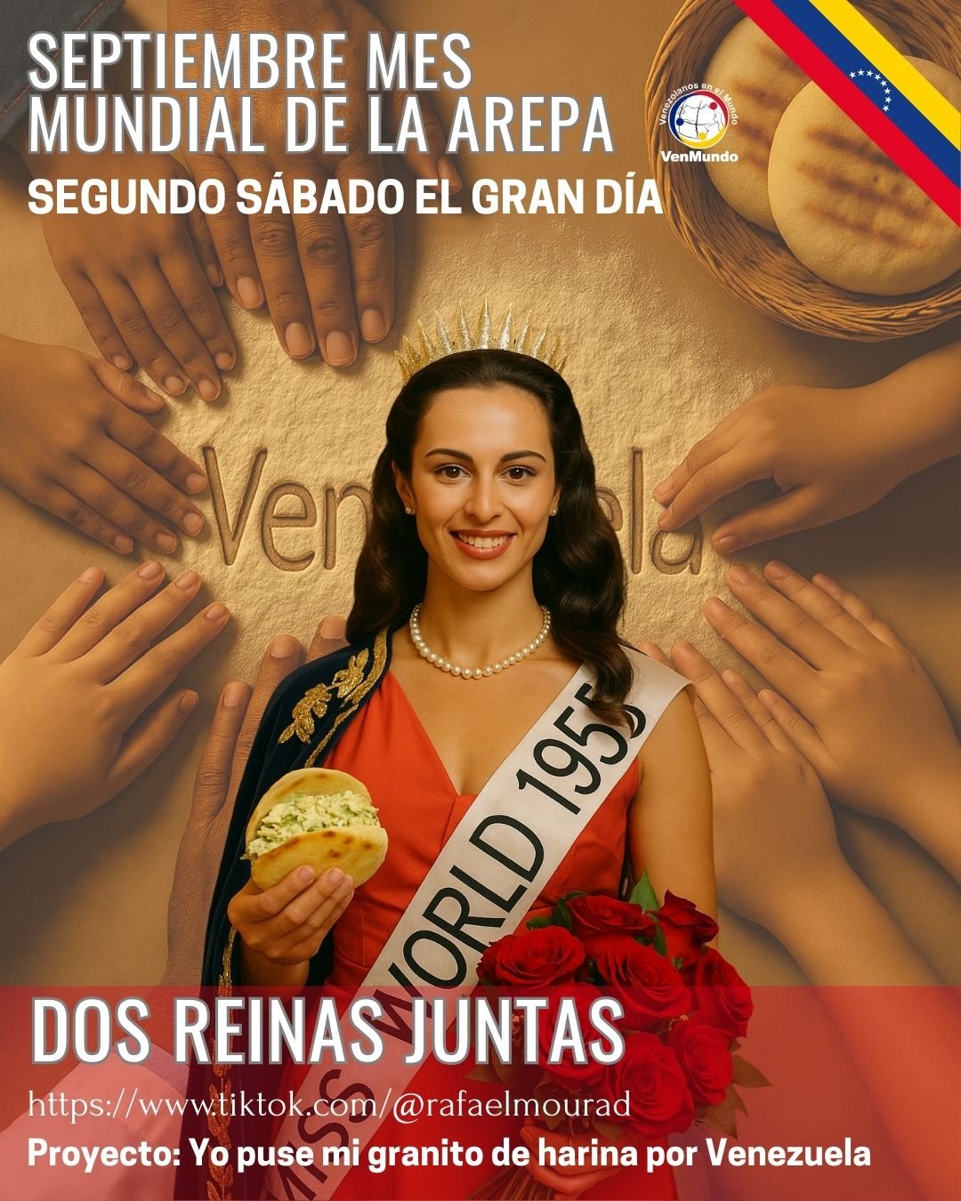 Todos los venezolanos del mundo están invitados a sumar su granito de harina. Únete el 13 de septiembre 2025, comparte tu historia con #MiGranitodeHarina y seamos protagonistas juntos del futuro de Venezuela desde nuestra identidad cultural compartida.